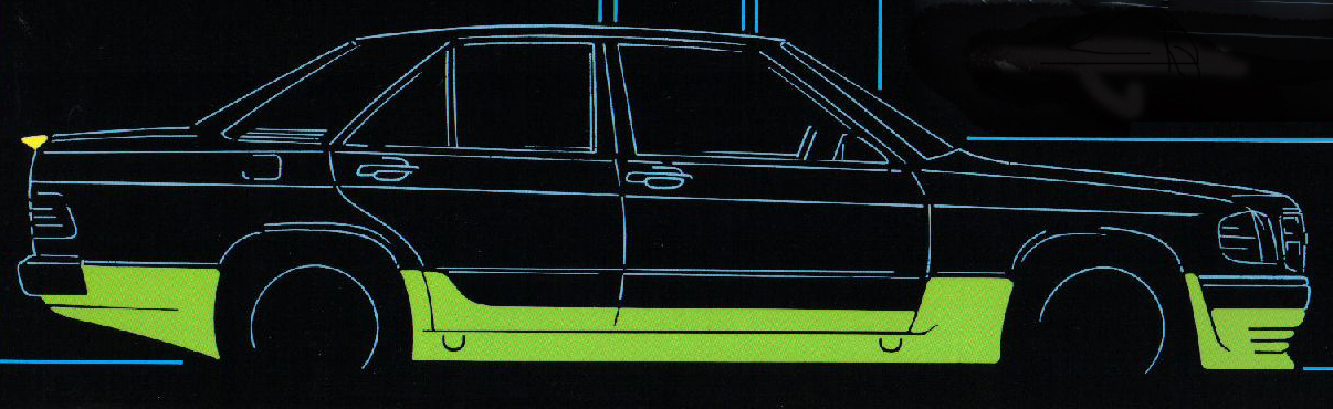 Di due anni successiva è la presentazione del kit di carrozzeria per l’allora nuova piccola della Mercedes, la W201, meglio conosciuta come 190E. Auto Capital sul numero 6 di giugno 1984 ci propone una 190E a cui è stato montato proprio tale kit, confrontata con le realizzazioni di AMG, Palber e Zender, in un articolo dal titolo “Lisce, gasate, sempre più belle”, con un chiaro riferimento ad una pubblicità della Ferrarelle allora in voga. Vediamo cosa scrive il mensile che all’epoca orbita nel gruppo editoriale del Corriere della Sera: “Il ricorso alla personalizzazione della 190 deve evitare certe soluzioni troppo azzardate che mal si legherebbero con l’eleganza e il fascino di questa Mercedes…” “In tema di trasformazioni totali, è molto interessante la proposta di Bubble Car, che vende separatamente le singole parti della sua trasformazione: l’elemento più originale è senza dubbio il cofano anteriore in fibra di vetro, il cui disegno ricorda il cofano delle Mercedes 380 e 500 SEC”. In effetti la realizzazione dell’azienda di Corsico è ancora oggi abbastanza equilibrata, molto più di altre loro proposte, come per esempio Fiat Uno e VW Golf 2, che oggi appaiono molto massicce ed esteticamente pesanti più che aggressive. Solo il cofano in stile Mercedes W126C fa apparire la grossa calandra sproporzionata rispetto ai piccoli fari, che appaiono quasi dimezzati in lunghezza rispetto ai proiettori di serie. Nonostante il costo di un milione di lire, esclusi montaggio e verniciatura, tale elemento trova un suo spazio di mercato nella Milano da bere di quegli anni, con buone vendite.